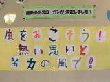 今年の運動会のスローガンは、代表委員会で話し合った結果、「嵐を起こそう!熱い思...