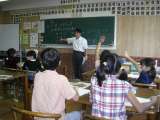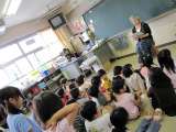 日本語の学習で、ゲストティーチャーをお招きしました。 児:「民話って・・?」 教...