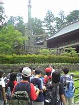 二荒山神社の親子杉の前で班ごとに記念撮影。これから宿舎に向かいます。