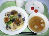6日(金)は、七夕メニューでした。 人参を星形の型で抜いて、七夕ずしや七夕汁に入...