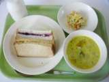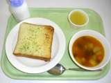 4日(水)の主食は、人気メニューの一つ「ガーリックトースト」でした。 各クラスに...