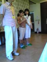 行田先生も挑戦しました。同じ姿勢を続けているので腰が痛くなります。マッサージをし...