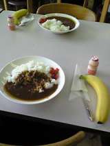 日光恒例の三日目の昼食は、カレーライスとバナナとヤクルトです。完食。