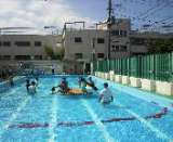 たくさんの保護者の方々のご協力を得て、いかだの進水式を行いました。