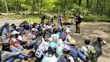 竜頭の滝に到着しました。流れる滝の様子を見て「本物の龍みたい。」と盛り上がる子ど...