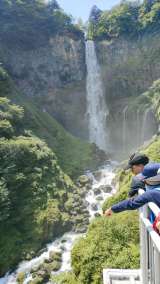 バスで移動をして、日光周辺では最も有名な華厳滝へやってきました。97メートルの高...