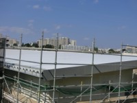 体育館の屋根がすっかりと変わり、暑熱対策工事がほぼ終了しつつあります。工事自体は...
