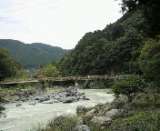 多摩川上流に到着しました。まわりの石の大きさ、流れの速さに着目です。