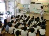 六年生は、理科の研究授業です。実際にやってみて話し合っています。