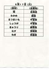 9月11日(水)の献立は、ゆかりごはん、あじの南蛮焼き、けんちん汁、牛乳です。 ...
