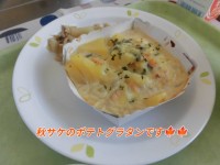 🌰献立🌰 ミルクパン・秋さけとチーズのポテトグラタン・きのこのガーリックソテー・...
