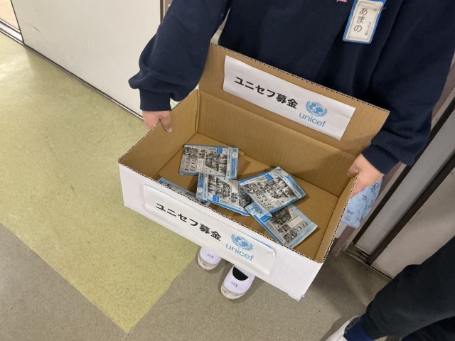今日から2日間、ユニセフ募金が行われます。代表委員の子どもたちが、募金の呼びかけ...