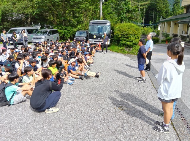 予定よりも早く3日間お世話になる宿舎の懐かし屋風和里に到着しました。駐車場で開園式を行い、しっかり挨拶しました。