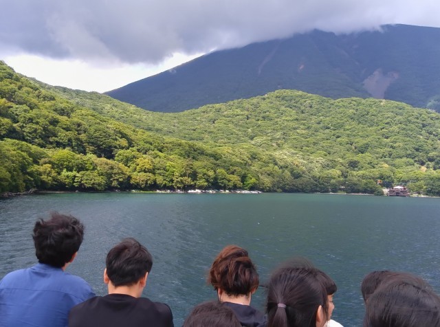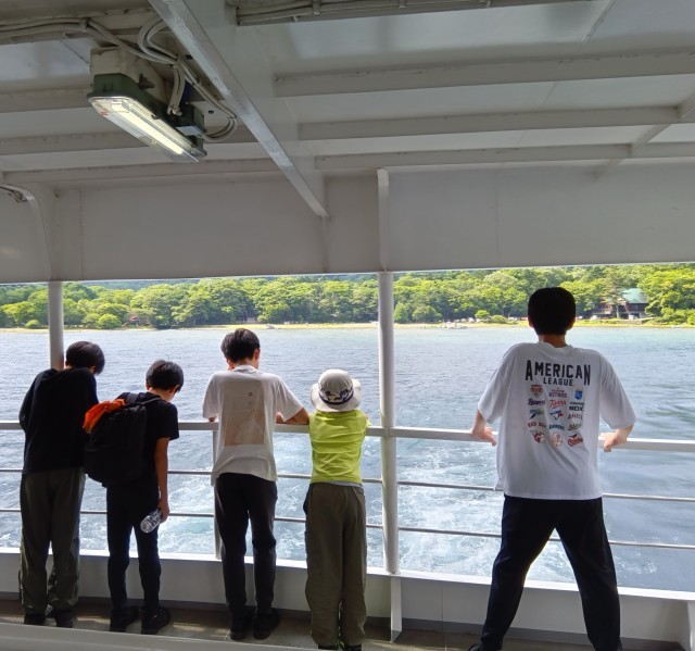2日目行程の最後に中禅寺湖の遊覧船に乗りました。少し曇ってきましたが、気持ちの良い湖上の風にあたりながら楽しみました。