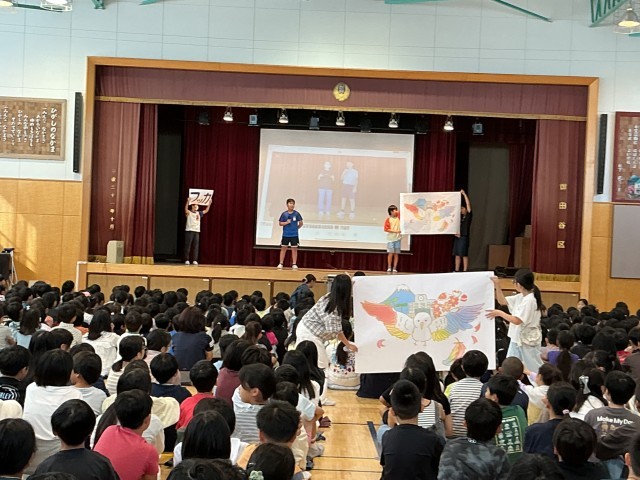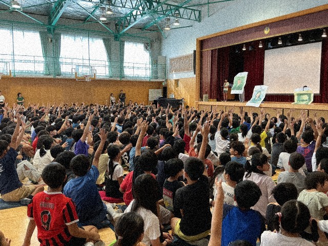 全校で考えて選ばれた学校の新キャラクター「フッカ」が発表され、歓声が上がりました。今後様々な場面で活用していきたいと思います。