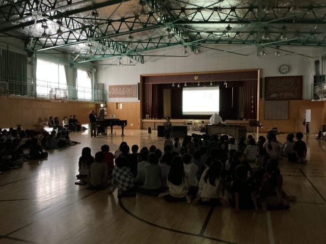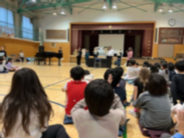 6時間目に体育館でDKOさんによる「おはなし会」が行われました。「エパミナンダス」「しずくのぼうけん」「かいじゅうたちのいるところ」のお話を聞きました。どのお話も、朗読と合唱や楽器の演奏を組み合わせた演目でした。子どもたちは、素敵な空間を楽しみ、お話の世界に浸っていました。今回の会をきっかけに、これからたくさんの本に触れてほしいと思います。