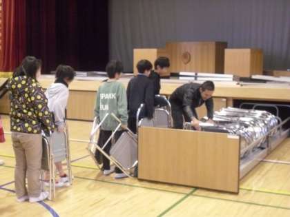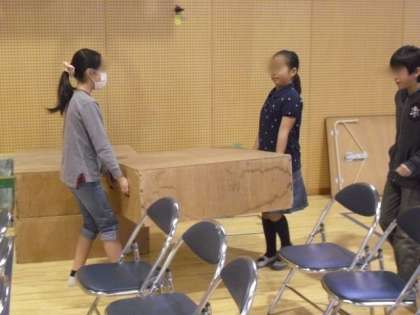 パイプいすやマット、ひな壇、パネルなど数多くありましたが、5年生は一生懸命取り組んでいました。