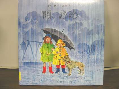この本は、雨が降ってきてレインコートを着た姉弟が、雨の日の楽しさを画面いっぱいに描いています。水彩画がとってもきれいです。