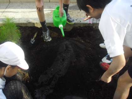 とはいえ、子どもたちは楽しそうです。じかに土に触れる遊び(学習)は子どもたちの心を穏やかにします。みんないい顔で遊んで、いや学習に取り組んでいました。