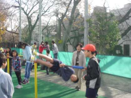 鉄棒やだるまさんがころんだ、ケンケン鬼もありました。