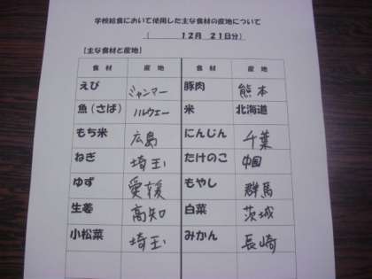 来年もいつものようにおいしい給食を作ってください。よろしくお願いします。