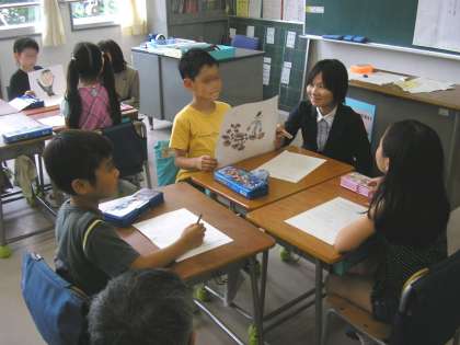 2年2組の子どもたちも相手のことを考えて、生き生きと活動していました。子どもたちの生き生きした活動は、寺山 佳那 先生の毎日の指導があるからです。