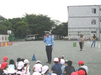 警察の方から自転車の安全な乗り方について指導していただいた後、実地訓練をしました。全員が、しっかりと後方を確認し自転車を走らせました。また、スラロームや狭路にも挑戦しました。警察の方から全員合格点をもらいました。これから自転車に乗ることが多くなると思います。今日の学習を忘れないで安全に楽しく自転車に乗ってください。