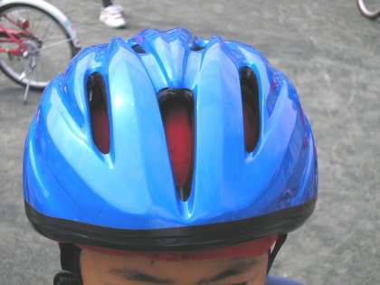 自転車に乗るときは、ヘルメットをかぶりましょう。