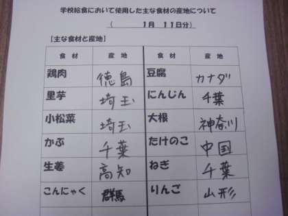 1/11 今日の給食