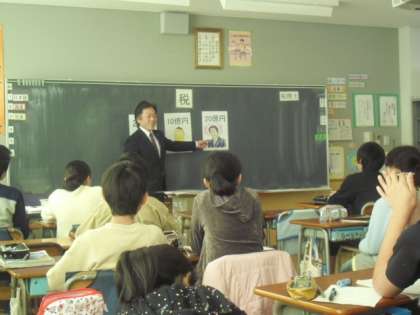 6年生です。1組は、日本語「漢字っておもしろい」で、漢字の成り立ちや漢字の組み立てについて考えました。2組は、東京税理士会の久野豊仁様を講師としてお招きし、「租税教室(社会科)」として日本や他国の税について学びました。3組は、理科「水溶液の性質」で、水溶液に金属を入れた時の変化の様子を調べました。