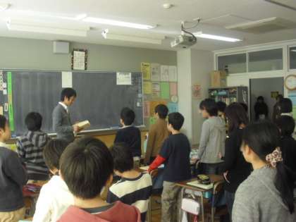 5年生です。1組は、理科「もののとけかた」で、ものが水に溶ける様子を予想して観察しました。2組は、国語「句会を楽しむ」で、俳句を作成し、互いの句について感じたことを伝え合いました。3組は、日本語「言葉っておもしろい」で、漢字の読み方について考えました。