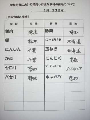 1/23 今日の給食