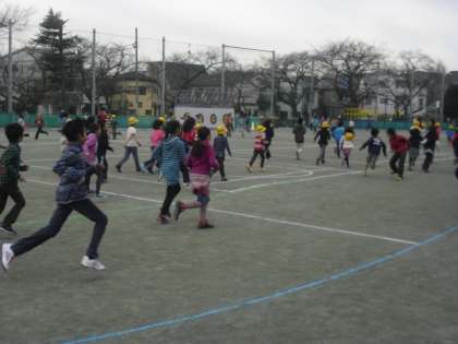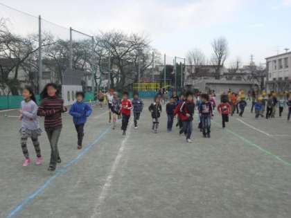 はじめは、走る人数が少なかったのですが、時間がたつにつれ、低学年から高学年までどんどん人数が増えていきました。先生方も走っていました。