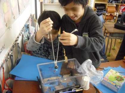 3年生は、「じしゃくのひみつ」の学習のまとめとして、磁石の性質を使ったおもちゃ作りに取り組んでいます。