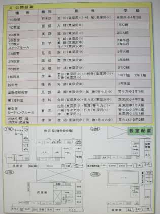 9時45分から10時35分までは、授業を公開します。ひがしの4年生が中学校の教室で学習します。