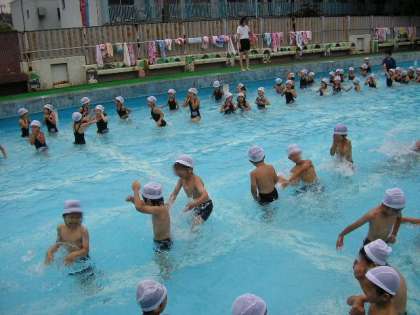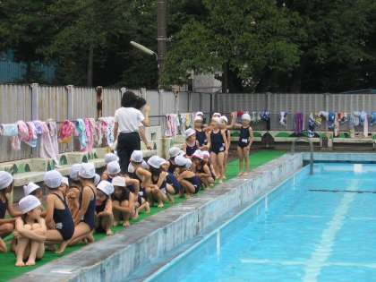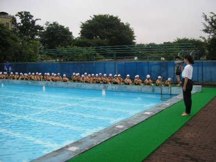 1年生もプール開きを行いました。初めての学校のプールに、ちょっととまどいもありました。人数もバディで確認します。水温25度は、1年生にとっては寒かったようです。これからの水泳を楽しみにしています。