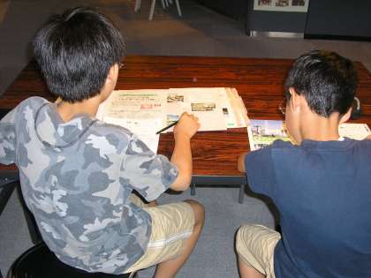 今日の4年生は午前中、教育センター移動教室です。プラネタリウムで、「月と星の学習」郷土学習室で、世田谷の「地勢」「生物」「文化」「生活」「公共施設」「交通」「文化」「生活」の中から自分の課題について同じ課題の友達同士がグループになって、調べ学習をしました。課題はあらかじめ学校で決めてあります。学習室の先生に資料を出すのを手伝っていただきながら学習を進めるグループ、自分たちで探したVTRを資料に課題解決に向けた取り組みをするグループと一生懸命に学習しました。郷土学習室の先生から渡されたパンフレット「崖」は、「お家の人に見せてください。」とのことです。貴重な自然が残っている国分寺崖線のことが載っています。