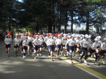 今年から男女ともに1,500mを走ることにしました。みんな自分への挑戦です。頑張って練習してきた子や、やや体調を崩している子、けがのため練習が思うように進まなかった子もいましたが、自分の今持っている力を十分に出してくれることを願っていました。結果は、女子のトップは6分28秒で、全員が11分30秒以内、男子のトップが5分42秒で、全員が9分45秒以内と全員完走できました。参加者全員がしっかりと走り切ったことが何よりも嬉しかったです。