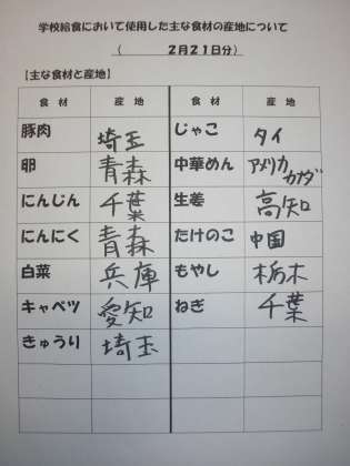 2/21 今日の給食