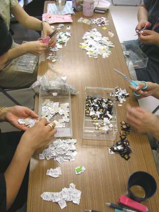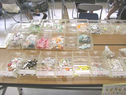 今日は、ベルマークの作業日です。10時より皆様に集めていただいたベルマークの集計作業を係りの方27名と委員12名で行いました。ベルマークを所定の大きさにはさみで切り目を凝らして仕分けいたしました。1学期分として9637枚(21,664点余り)
