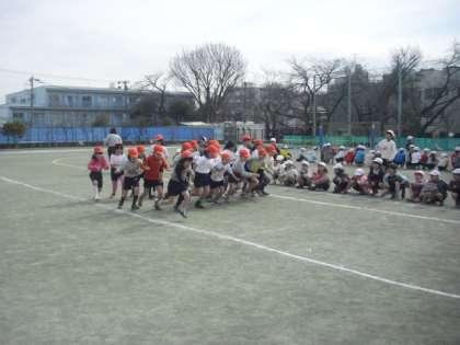 周回数を数えるお友達は、数を間違えないよう真剣に数えながらも、自分のペアだけでなく、お友達みんなを応援していました。こういった場面にも、お友達を大切にする姿が見えたことはとてもうれしいことです。