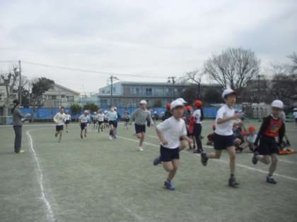 2年生のマラソン大会が3校時に校庭で開かれました。5分間で何周(1周80m)走ることができるかへの挑戦でした。