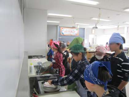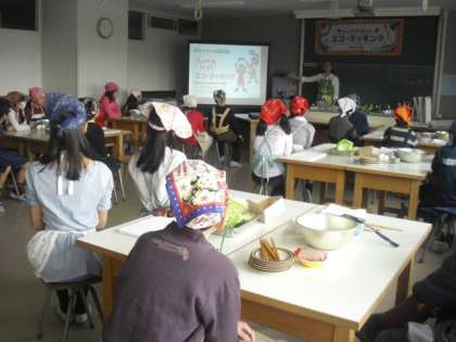 東京ガスから3人の講師にいらしていただき「エコクッキング」を行いました。