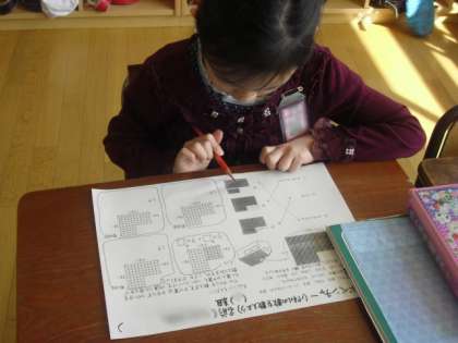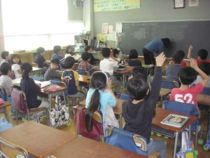 これまでの算数の時間は、自分の教室での学習がほとんどでした。生活科や特別活動で他の教室で自分のクラス以外のお友達と学習した経験はありますが、算数の学習では、初めてです。普段とは違うお友達、普段とは違う教室での学習に緊張している様子も見られましたが、時間がたつにつれて、積極的に挙手したり、お友達と一緒に考えたりする姿が見られるようになりました。