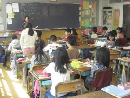 2年生の3学級の子どもたちが、4月から始まる算数少人数学習に備えて、4つの教室に分かれての学習に臨みました。場所は、2年1組、2組、3組、算数少人数室です。