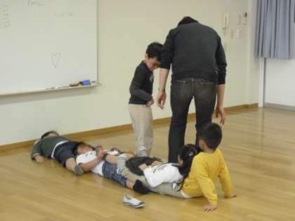 はじめは「だるまさんが転んだ」の遊びから始まりました。そこから少しずつルールを変えながら、体で表現する活動に入りました。