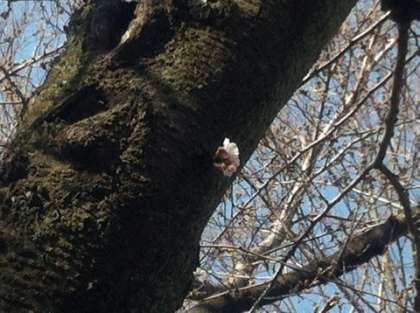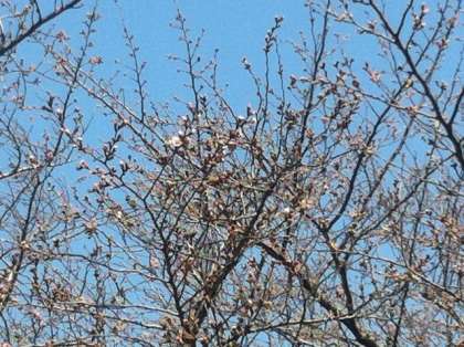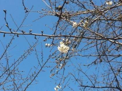 あたたかい土曜日です。学校の前の呑川の桜が開花しました。