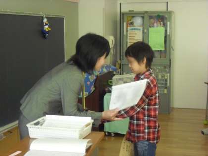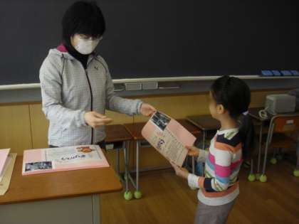 「ありがとうございました」の気持ちをこめてお手紙を渡すお友達。