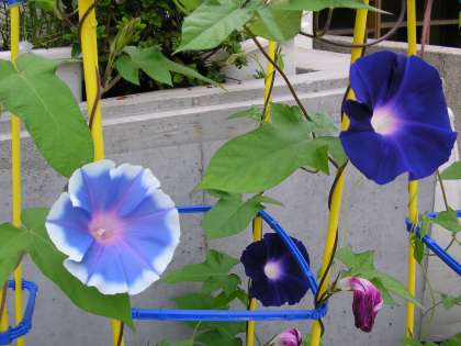 1年生が春からお世話をしてきた「あさがお」が毎朝きれいに咲いています。
