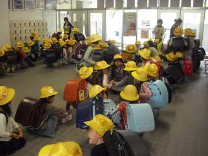 帰りは、コースごとに分かれて、担任の先生や専科の先生、主事さん方と一緒でした。116人のお友達が、元気に下校していきました。通学路を通って寄り道をせずに家までまっすぐ帰ることも大事な学習です。